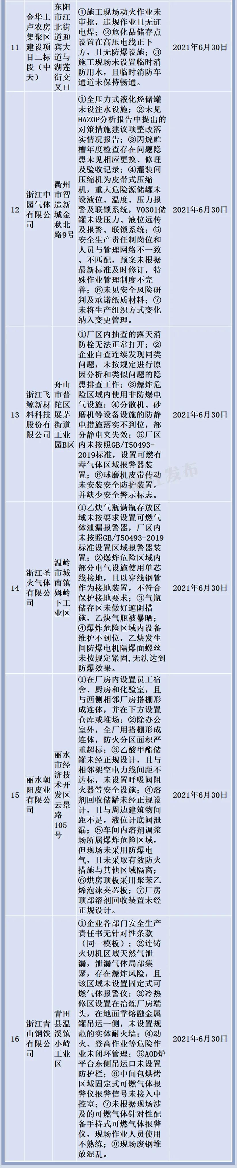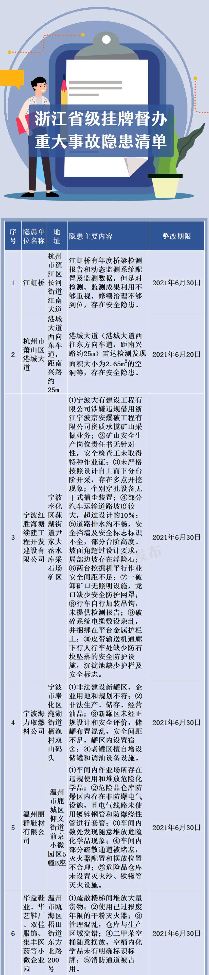 • 浙江對16家單位重大事故隱患實施掛牌督辦