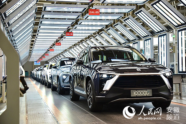 今年4月,蔚來第10萬輛量產車在合肥下線,創下同業最快紀錄。人民網 李希蒙攝