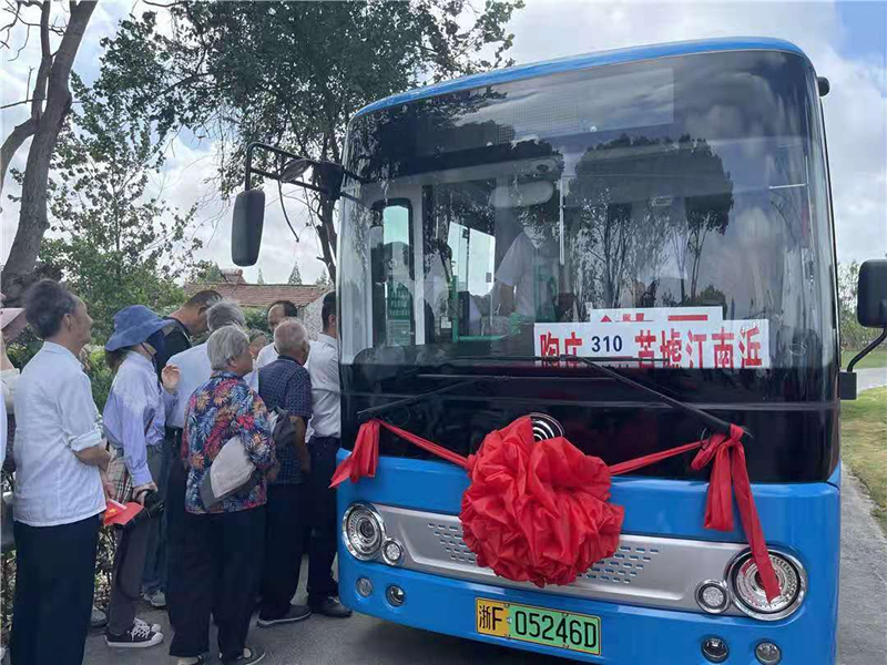 陶莊村民排隊坐310路公交車去往吳江蘆墟鎮。嘉興陶莊鎮供圖
