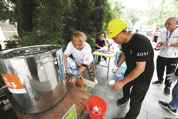 當日,在杭州市艮山門公交車站旁的“茶香驛”前,免費供應的涼茶也備受青睞。這個由杭州潮鳴街道艮山門社區居民自發設立,匯聚社會各界的微公益力量的涼茶攤在每年的7月1日至8月30日出攤,100多名社區志愿者輪流“掌柜”,今年已是第17個年頭,不僅為過往路人搭建一個消暑小憩的驛站,也成為展示杭城志愿者風貌的一個文明窗口。(李忠)