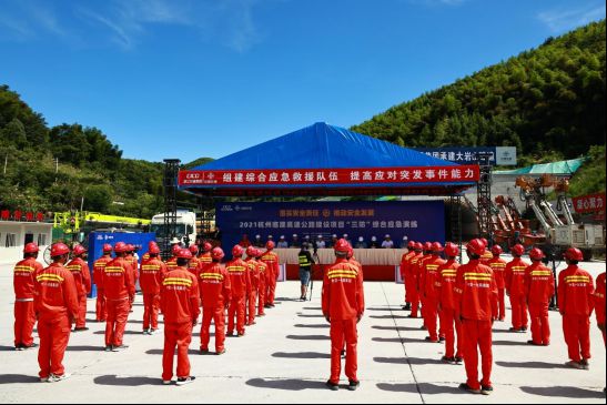 7月6日,一場由杭州市交通運輸行政執法隊、臨建高速共同主辦,臨建高速TJ06標項目部承辦,桐廬縣應急管理局、桐廬縣舊縣街道、杭州交通工程監理咨詢有限公司協辦的2021年杭州臨建高速公路建設項目“三防”綜合應急演練活動在浙江省交通集團臨建高速大巖山特長隧道附近街道舉行。