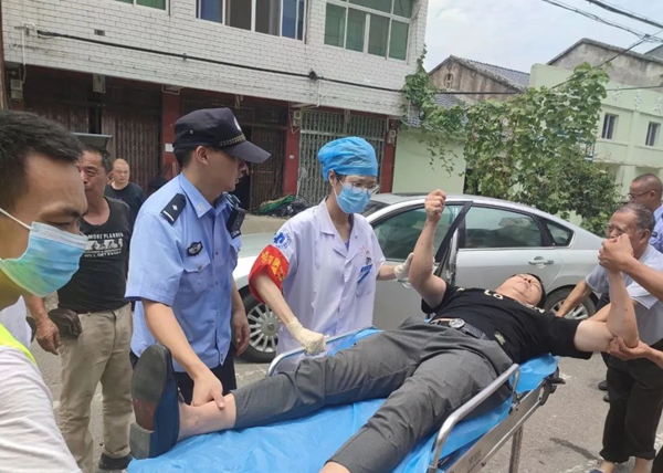 7月12日,在浙江溫州永嘉縣大若巖街頭,一輛轟鳴著油門的汽車引起了群眾注意。車內,司機口吐白沫在駕駛室不省人事。聞訊趕來的大若巖派出所輔警陳雄新在無法打開車門的情況下,用榔頭砸碎了車窗,顧不得被玻璃劃傷血淋淋的雙手,將司機救出。