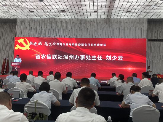 7月15日上午,溫州瑞安市“揚黨旗 惠萬企”民營企業專項服務聯合行動啟動儀式舉行。該行動通過金融機構牽手民營企業,強化民營企業綜合服務;通過構建“黨建+金融”服務民企新模式,助力民營經濟健康發展,全力打造民營經濟金融服務示范區。
