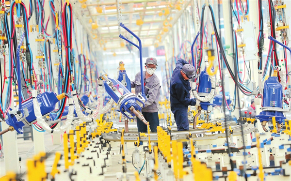 湖州市莫干山高新區一家公司數字化車間內,工人們近日正趕制新能源商用大轎車。今年,該公司加速推進數字化車間建設,實現全程自動化、數字化、移動化智慧生產,加速推動制造業高質量發展。(謝尚國)