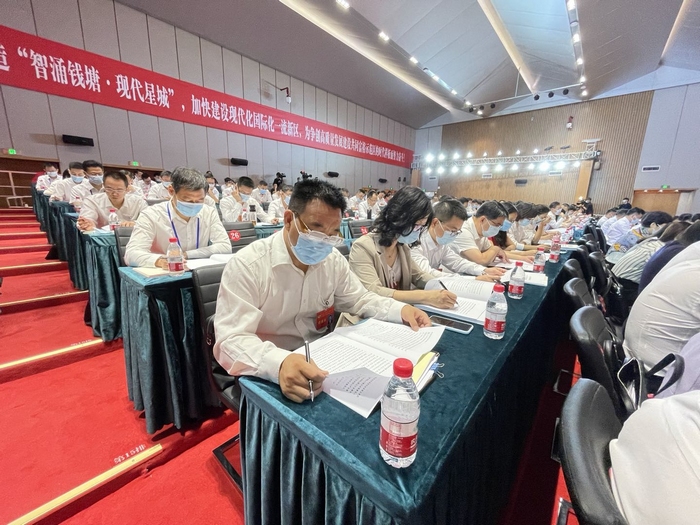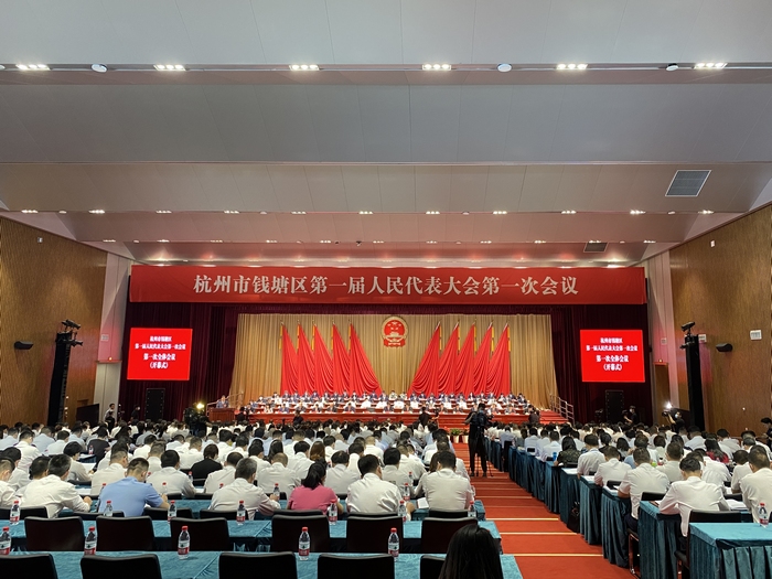 人民網杭州7月20日電 今天上午,杭州市錢塘區第一屆人民代表大會第一次會議開幕。錢塘區人大代表齊聚國際創博中心,聽取區政府籌備組組長朱黨其所作的政府工作報告。