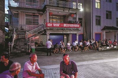 這之前,已經有吃完晚飯的村民陸陸續續來到這里,大多是老人。早在兩天前,村里就用大海報做了預告:今晚放映影片《勇士》。這種文化活動對他們而言是家常便飯了,因為村委會每月都會組織好幾次類似的文化活動。