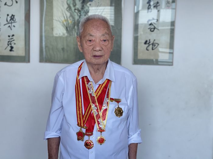 徐振權胸前掛著很多黨員紀念獎章。人民網 王蕭蕭攝
