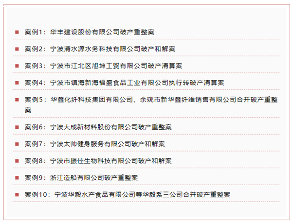 寧波法院服務經濟高質量發展破產審判十大典型案例目錄