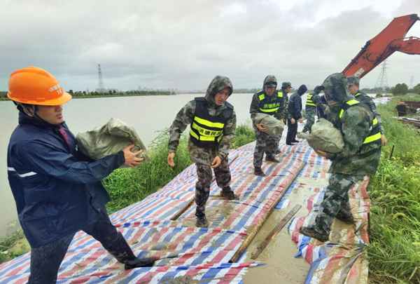 寧波洪塘干群耗時3小時在姚江下梁閘筑起300米“生命線”