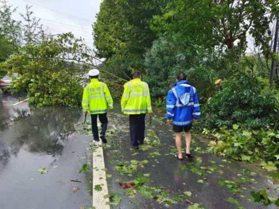 鳳鳴交警中隊為預防臺風影響造成道路交通安全隱患,從24日開始對轄區內道路設施加固、路邊樹木垂落清除、路面坑洼積水開展巡邏整治工作,發現問題及時解決。