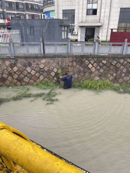 7月25日上午9點,70歲的屠甸鎮萬星村志愿者朱長生在巡查小區雨水入河口時,發現入河口拍門沒有關好,被雜物堵住,朱長生義無反顧跳進河里進行疏通,確保河水不倒灌。