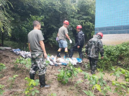 7月25日,梧桐街道城西村組織人員對南斗、大竹園橋外河落河缺進行封堵。為盡快封堵管道,黨員志愿者不顧雨勢和危險,跳進河里用沙包封堵,及時排除險情。