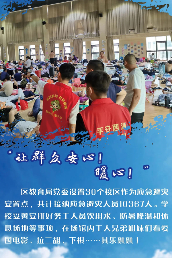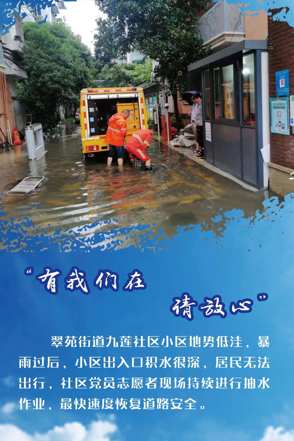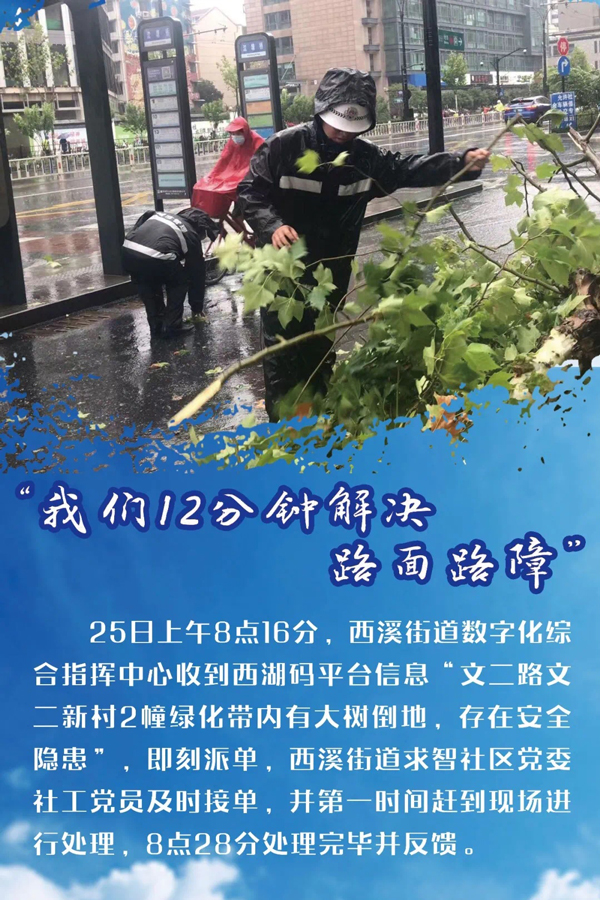 今年第6號臺風“煙花”從7月24日開始影響杭州市,7月25日中午登陸舟山后,于26日9時50分前后在浙江省平湖市沿海二次登陸,給人民群眾的生命財產安全造成重大威脅。連日來,杭州市西湖區村社、機關、行業、兩新、國企等各領域黨組織和黨員干部深入防臺抗汛第一線,以守土有責、守土擔責、守土盡責的決心和行動,全力以赴抵御“煙花”來襲!