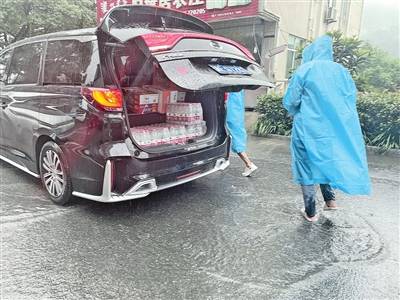 “這些東西是給你們的,這些天大家都辛苦了!”7月25日,臨近中午,章村鎮長潭村村委突然跑進來幾位穿著雨衣的青年,放下幾箱礦泉水和泡面,留下幾句簡單的慰問便匆匆離開。
