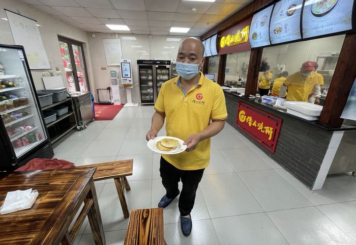 從店名來看,“縉云燒餅杭州總部”聽起來就很氣派。再一打聽,還是官方認證的。店長黃多通是縉云十位燒餅大師之一,政府特聘來到杭州的。據他介紹,這些年,縉云人靠著做燒餅,走出了一條“螞蟻雄兵”式的鄉愁產業富民之路,年產值20多億元。