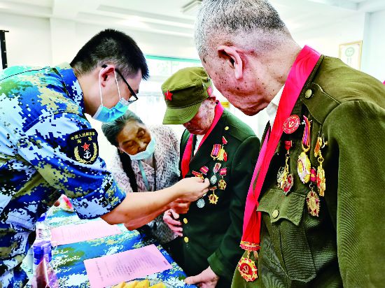 “爺爺,能讓我們看看您胸前的這些軍功章嗎?”近日,在解放軍駐義烏部隊軍營里,戰士們紛紛上前觀看幾位抗美援朝老兵胸前的一枚枚軍功章,臉上充滿了敬佩和敬仰。當天,浙江義烏市文聯古今文學研究院、前洪紅色記憶陳列館的20多名骨干組織三位九旬高齡的抗美援朝老兵走進軍營,向子弟兵致以節日問候。