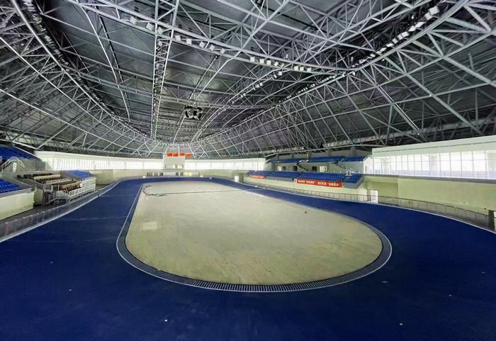 走進亞運輪滑館,記者看到國際輪滑協會最新200×7米標準速度輪滑賽道和50×25米花樣輪滑比賽場地已鋪裝到位,1300余個觀眾席也已安裝完畢。賽道上方,四面五星紅旗正迎風飄揚。