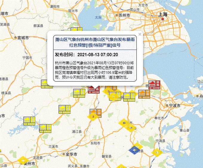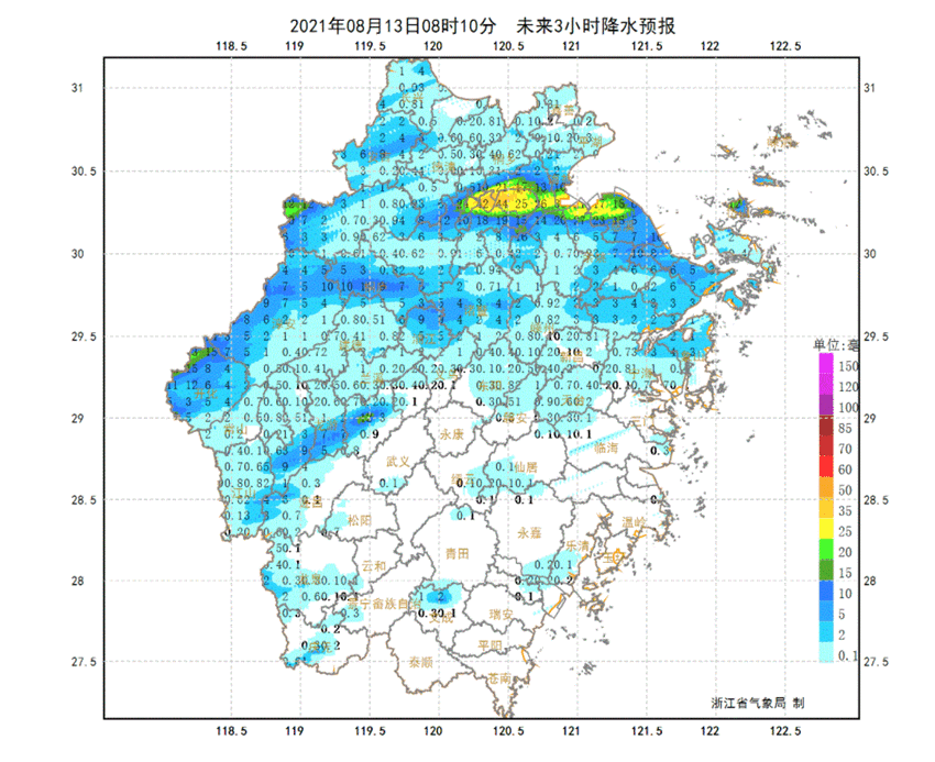 今天7時45分,浙江省水利廳發布山洪災害預警。預計8時至14日8時,拱墅區、西湖區、蕭山區、富陽區、桐廬縣、淳安縣、吳興區、長興縣、浦江縣、開化縣可能發生山洪災害(藍色預警),余杭區、德清縣發生山洪災害可能性較大(黃色預警),臨安區、安吉縣發生山洪災害可能性大(橙色預警)。