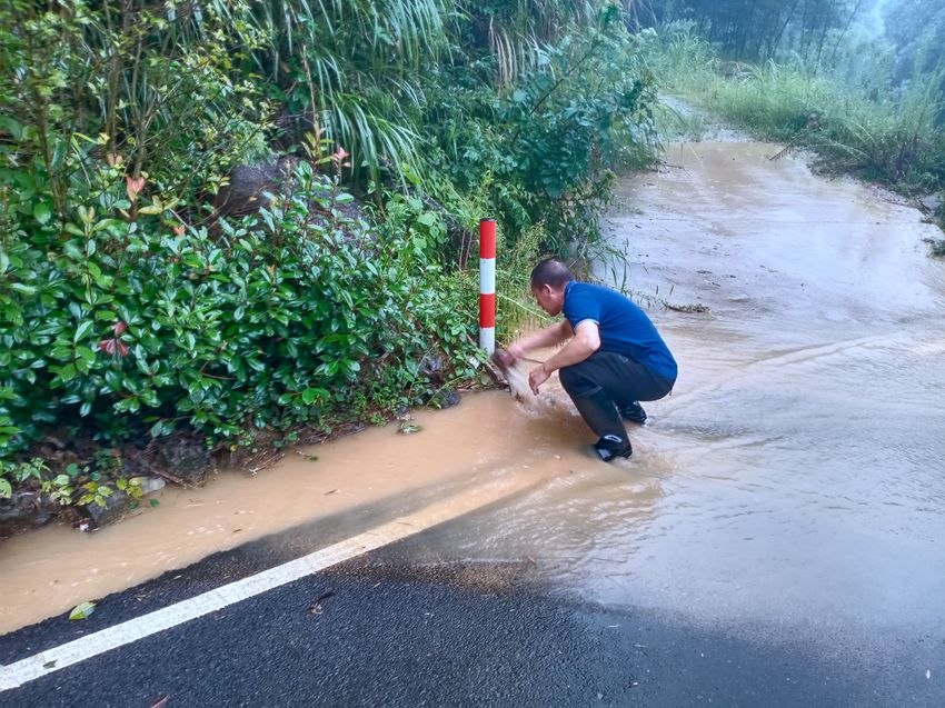 桐廬莪山鄉各村積極行動,做好短時強降雨巡查和防范工作。桐廬宣傳部供圖