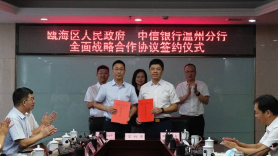 中信銀行溫州分行與溫州市甌海區政府全面戰略合作簽約