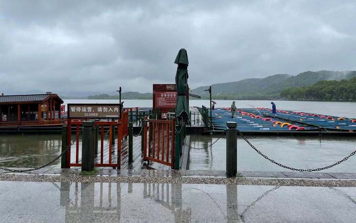 受強降雨影響,西湖湖面非機動船全面停航。人民網 王麗瑋攝