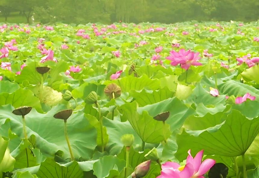 西湖荷花盛開。視頻截圖