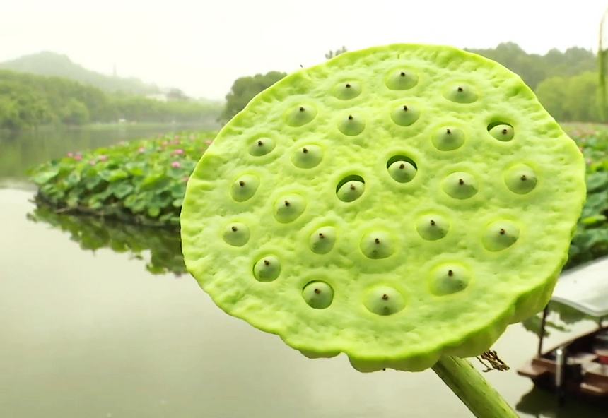 西湖蓮蓬。視頻截圖