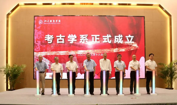 8月18日,浙大城市學院舉辦考古學系成立儀式,浙江省文物考古研究所方向明、鄭嘉利應邀出席儀式,共同見證了浙江省首個考古學本科專業成立。浙大城市學院黨委委員、副校長趙陽同志匯報浙大城市學院考古學系籌建過程中提到,考古學系由杜正賢先生加盟領銜,計劃2022年9月招收考古學本科第一批30人。國家文物局副局長顧玉才同志視頻致辭祝賀。浙江省文化和旅游廳黨組書記、廳長褚子育同志在致辭中,充分肯定了成立首個考古學系的意義,稱之為是破冰之旅,是很有價值的考古事件,是開明、精明、高明之舉。