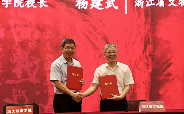 浙大城市學院羅衛東校長與浙江省文物局楊建武局長簽署協議。任偉攝