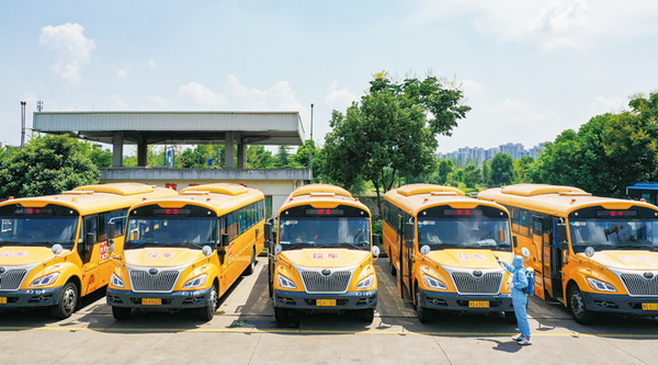 8月18日,金華市公交集團營運一公司工作人員對校車進行防疫消毒和專項安檢,全力做好新學期校車運行安全和疫情防控工作。據悉,每輛校車都配備體溫檢測儀、消毒噴霧器、消毒液、橡膠手套、應急藥品及備用口罩等防疫物資,以便接送完學生后對車輛死角進行衛生清理,整體車廂進行通風和消殺。(李建林)