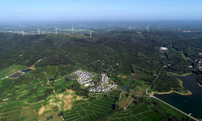 從合肥市區駕車出發,經滬陜高速,大約1小時左右,便抵達位于全椒縣大墅鎮的大墅龍山生態旅游度假區。峰回路轉間,一座古樸元素與現代風格相結合的民宿,靜謐地躺在群峰的懷抱中。