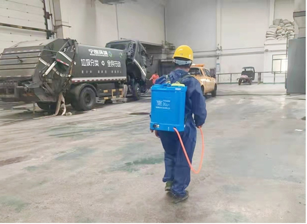 工作人員正在進行廠區消殺作業。蕭山區固廢保障中心供圖