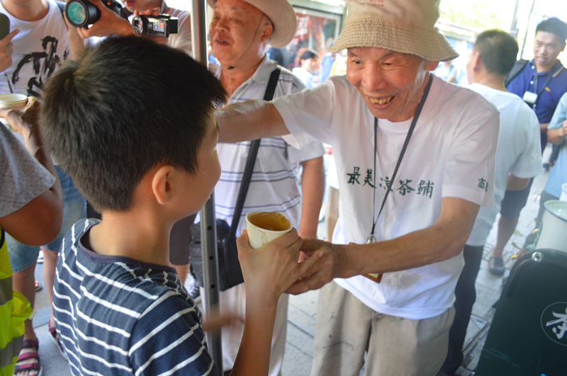 顧忠根大伯擺涼茶攤,為市民免費提供涼茶。資料照片