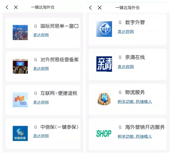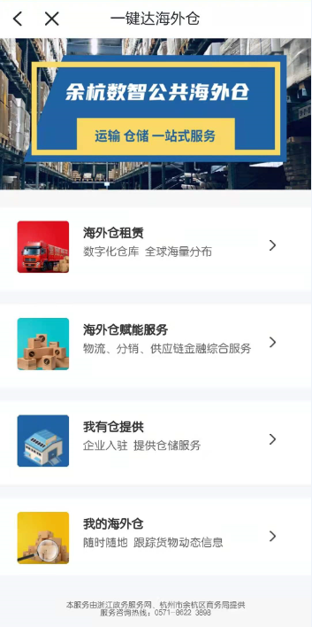 “一鍵達海外倉”應用場景手機頁面。余杭區商務局供圖