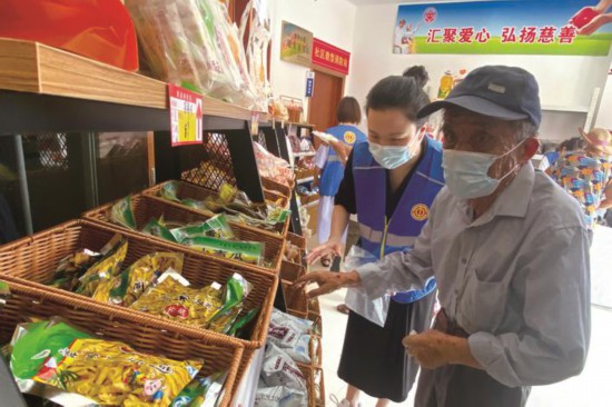 8月26日,嘉興南湖區湘家蕩區域(七星街道)湘都社區慈善超市正式開業,該愛心超市由區民政局、區健康產業協會創辦,旨在為轄區特殊人群提供便利和優惠服務,為貧困家庭中的下崗人員提供就業崗位。(盛莉莉)