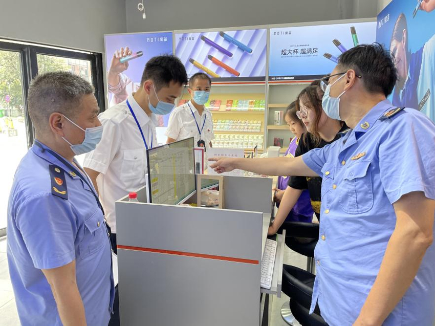 安吉縣煙草專賣局聯合市場監管部門開展電子煙專項檢查行動。潘洋洋攝