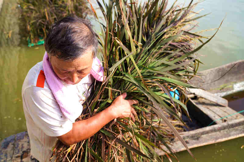 曾經的金火村是養豬大村,養殖規模大,村里部分河道較為封閉,養殖廢水和生活污水排入后導致水體富營養化,水環境遭到破壞!斑@幾年鎮政府對生態環境問題非常重視,同時隨著村民環保意識的不斷增強,各項改善水質的措施陸續實施!苯鸹鸫妩h委副書記蔡金麗表示,以前這一片河道種植的是花卉,但花期短、保養成本高,相比之下,現在的“水上稻”種植不用施肥不用打農藥,也不用擔心雜草,非常省心,“浮床漂在河面上,就這樣讓水稻綠色生長!