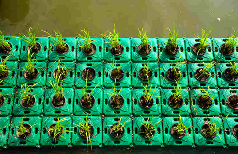 “水上稻”種植在特制的浮床上。人民網 方彭依夢攝