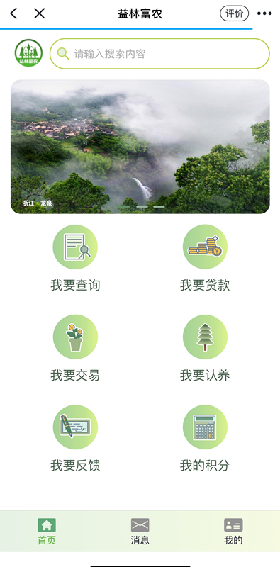 “益林富民”多跨場景應用平臺手機頁面截圖