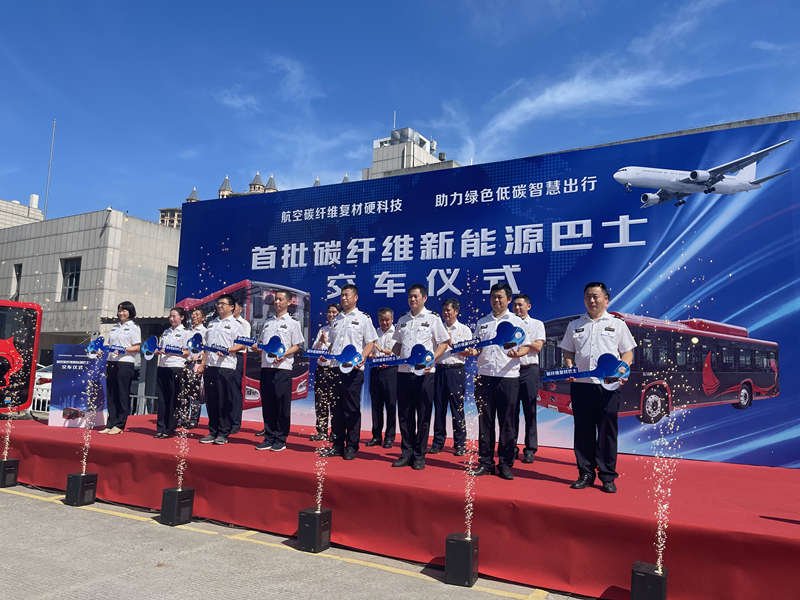 首批碳纖維新能源巴士交車儀式現場。人民網 王蕭蕭攝