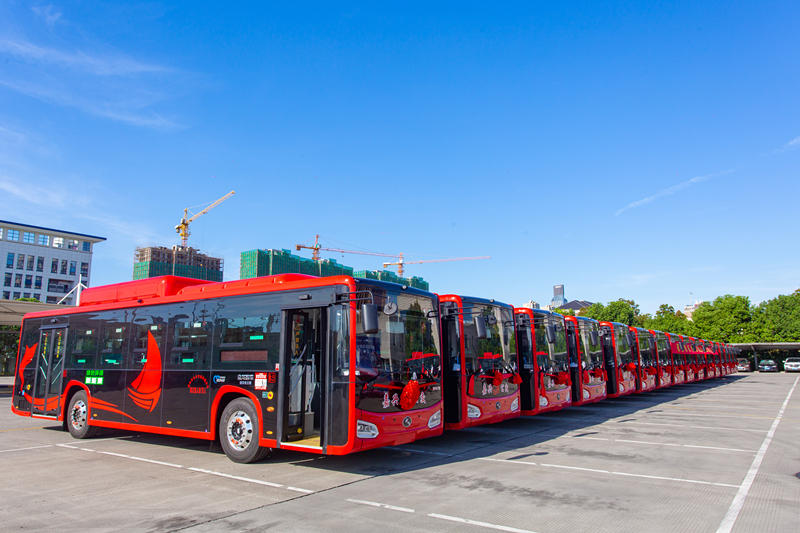 18輛“紅船號”碳纖維新能源巴士。清華軍融院供圖