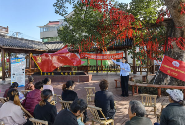 “凡是自稱公檢法在電話里涉及要你轉賬匯款的都是詐騙……”上午10時,雖然天氣炎熱,衢州龍游縣湖鎮鎮地圩村黨建公園旁的涼亭里卻笑聲不斷、十分熱鬧。浙江移動先進基層黨組織衢州龍游分公司黨支部的“8090新時代理論宣講團”成員正在進行反詐宣傳,向當地村民普及電信詐騙陷阱。