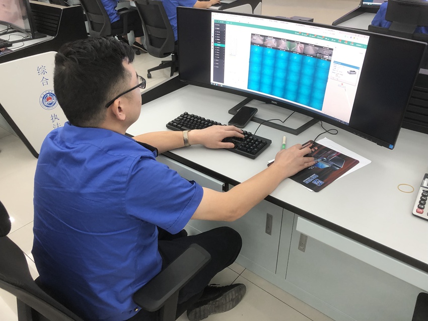 “指揮中心,是這輛車嗎?”“是的!痹谡憬〗B興市新昌縣數字城管監督指揮中心,工作人員正和現場執法隊員進行連線。隨后,執法人員開始對違停車輛進行抄牌、記錄。從線上發現違停后發送信息通知車主,到聯動線下執法人員到達現場處理完畢,半小時內辦結。