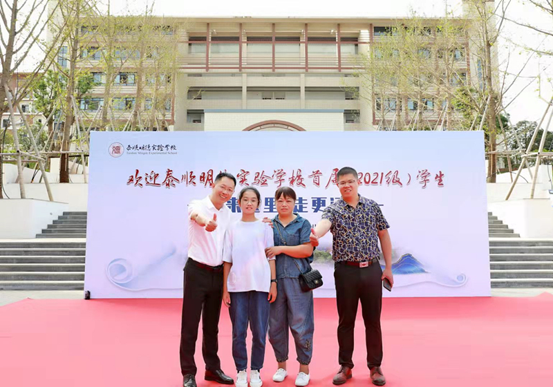 泰順明德實驗學校開學第一天,林成畝和學生家長合影留念。受訪者供圖
