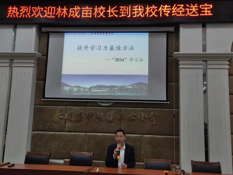 林成畝在羅陽鎮中心小學分享教育理念。受訪者供圖