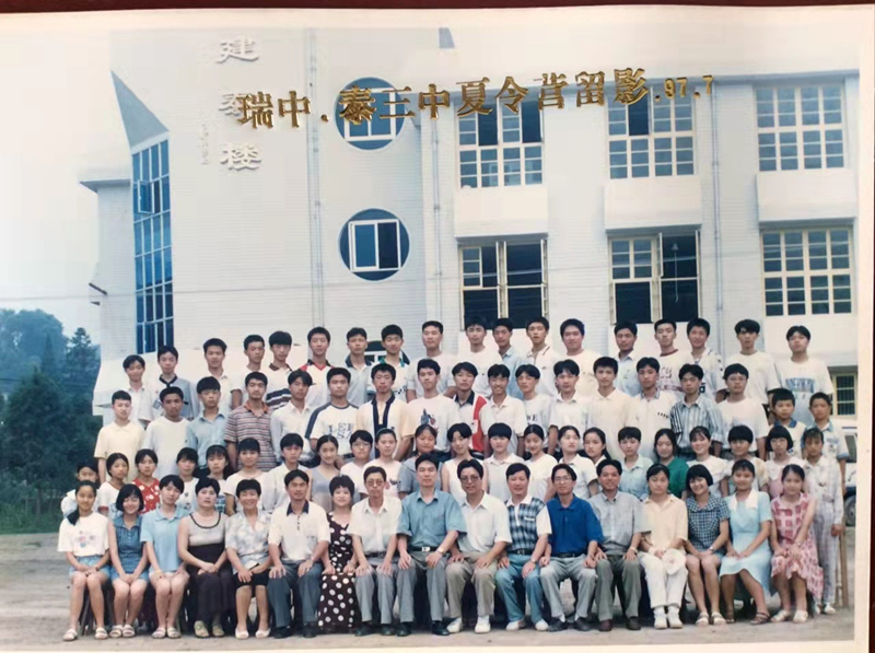 林成畝在泰順三中任校長時與其他師生的合影。受訪者供圖