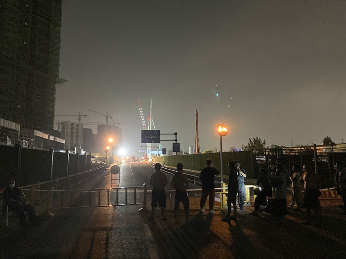 西側的交通關卡處聚集了一些附近的工人,有工人表示,這里下午5點鐘之前就不讓進了。而在東側的交通關卡處,由于往來車輛較多,封路直接導致了交通擁堵,路上,有的司機索性下車等待,其中一位表示:“這段不到2公里的路已經開了50分鐘了!