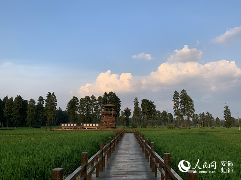 農田里的觀景臺,襯著夕陽格外顯眼。人民網 汪瑞華攝