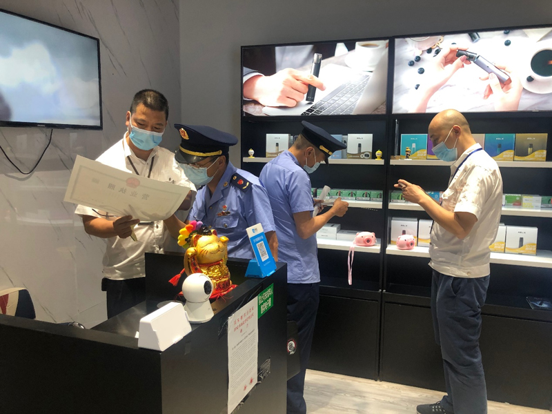 上虞區煙草專賣局聯合區市場監督管理部門開展電子煙專項檢查。蒲勇敏攝