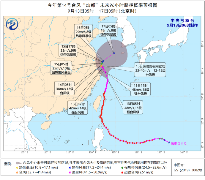 臺風“燦都”預計于9月13日下午穿過舟山群島